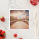 Serviettes en papier avec une photo pittoresque. Un pont en bois qui mène à un chemin entouré d'arbres forestiers qui changent de couleur.
