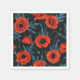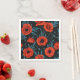 Serviette En Papier Poppies, rouge et bleu sur noir