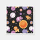 Motif à thème Whimsical dans l'espace avec d'adorables animaux dessinés dans un style napkin-doodle. Ce design ludique allie des éléments cosmiques tels que des étoiles, des planètes et des fusées avec de charmants croquis d’animaux, créant une esthétique unique et amusante, parfaite pour la fête d’anniversaire de votre enfant.