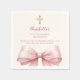 Couleur arrière - plan crème, beige. Décoré d'un grand arc rose et d'une croix dorée. Personnalisez et ajoutez le nom, la date et un texte.