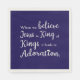 Un design de texte créatif en blanc sur bleu marine. "Quand vous croyez que Jésus est roi des rois, cela mène à l'adoration."