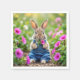 Un mignon lapin habillé de salons de denim bleu est entouré de fleurs pétuniennes roses vibrantes, créant une scène charmante et fantastique