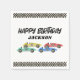 Serviettes de fête d'anniversaire de voiture de course avec des voitures de course aquarelle, à damiers bords, le titre "heureux anniversaire", et le nom des enfants.