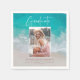 Moderne géométrique multi photo graduation océan plage moderne voyage aventure napkin. Avec un texte de script tendance et une superbe photographie océanique de plage. Classe 20xx également disponible. Partie d'une collection.