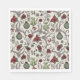 Ces serviettes en papier de Noël de pays festif présentent un motif occidental de pays dessiné à la main avec des crânes et des bois de rennes, des roses rouges, des plantes de cactus et des poinsettias à l'encre noire contre un arrière - plan crème élégant, capturant l'esprit de Noël.