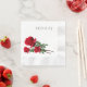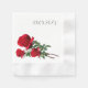 serviettes mariages aux roses rouges. Des tiges roses réalistes avec des feuilles décorent des serviettes blanches qui viennent dans de nombreux styles. Inclure la date du mariage en chiffres noirs ou supprimer ce texte. À utiliser pour les fêtes avant le mariage, une douche nuptiale et la réception de mariage.