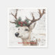 Cette serviette festive présente une illustration rustique d'un renne avec une couronne de pin et de baies rouges sur ses bois. L'arrière - plan a un look vintage, texturé avec script manuscrit, et "Joyeux Noël" est affiché en gras rouge. Parfait pour ajouter une touche de vacances confortable à votre période de Noël.