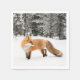 Renard rouge avec queue boisée dans neige blanche froide. Grande forêt de pins verts en arrière - plan. Belle nature.