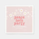 Serviettes de fête d'anniversaire d'inspiration rétro avec marguerites de style 70's et polices et couleurs boho.Paix, Amour, Fête.