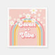 Sept est une Vibe ! Serviettes de 7ème anniversaire d'inspiration rétro avec polices et couleurs de style 70's, arc-en-ciel et marguerites en rose