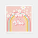 Dix, c'est un Vibe ! Serviettes de 10e anniversaire d'inspiration rétro avec polices et couleurs style 70's, arc-en-ciel et marguerites en rose