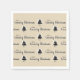 Serviettes de Motif rétro simple Beige Country Christmas Tree. Arrière - plan beige. En noir avec ombrage blanc : arbres de Noël dans des pots avec des bougies à l'ancienne, et les mots "C'est un Noël de pays" dans deux types de typographie.