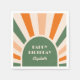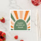 Verte, orange et pêche retro lunette de soleil cadre d'arche typographie serviettes d'anniversaire. Customisez facilement le texte de ces fournisseurs de fête d'anniversaire en utilisant le modèle fourni.