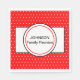 Serviettes en papier jetables personnalisées Family Reunion. Personnalisez avec le nom de famille en majuscules. Cliquez pour customiser pour augmenter/diminuer le nom de famille. Pois blancs amusants sur arrière - plan rouge vif avec l'allure de doubles assiettes et serviettes blanches. Motif d'été pour se retrouver en famille et entre amis pour pique-niquer et barbecue. OEuvre d'art et design © TamiraZDesigns.
