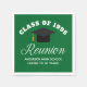 Une serviette de table en papier de réunion de classe personnalisée en vert et blanc pour une école secondaire, un collège ou une université. Customisez avec votre nom d'école et la classe de fin d'études sous l'élégante calligraphie pour un décor de célébration d'anciens élèves personnalisé.