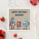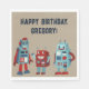 Ajoutez une touche de science-fiction vintage à toute fête avec ces serviettes personnalisées. Avec des illustrations de mignons robots de style rétro dans les tons rouge et bleu contre un arrière - plan bronzé, ceux-ci sont prêts à être personnalisés avec votre message personnalisé, les rendant parfaits pour les fêtes d'anniversaire pour les garçons et les fans de robots de tous âges.