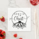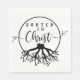 Enracinée dans le Christ, cette conception présente un design noir et blanc avec les racines d'un arbre et un texte disant "Enraciné dans le Christ".