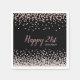 Ajoutez votre touche spéciale à cet élégant design de serviette de fête d'anniversaire sur mesure avec des confettis d'or et d'argent brillant rose sur un arrière - plan noir, typographie de script moderne avec les mots "Happy 21st" et le nom de la fille d'anniversaire.