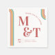 Serviette En Papier Rose | Retro Seventies Stripes | Monogramme Mariag