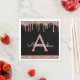 Rosée - Parties scintillant en or Rose et aux Faux noirs et serviettes d'Anniversaire Monogram élégant étincelant. Cette fête d'anniversaire, Fête des mariées, Mariage, Baby shower Napkin peut être customisé pour inclure votre nom initial et prénom.