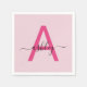 Serviette En Papier Rose vif moderne écriture girly monogramme nom