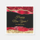Cette serviette élégante et glamour Happy New Year présente des larmes de glamour en faux parties scintillant rouge et or sur un arrière - plan noir. Le texte combine écriture manuscrite et polices sans serif modernes pour un look élégant et sophistiqué.