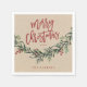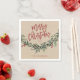 Un rustique script rouge Joyeux Noël vert Napkin Holiday avec script audacieux et aquarelle de guirlande avec feuilles et baies.