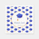 Complétez la décoration de votre jeune diplômé en utilisant ces serviettes personnalisées avec un motif de casquettes bleues. Illustré et dessiné par Patricia Alvarez.