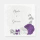 Fleurs royales romantiques violettes et blanches avec serviette en papier mariage feuille argent.