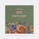 Serviettes élégantes et élégantes de 80e anniversaire de fête pour femmes avec rouille/brûlé orange et bleu marine fleurs d'aquarelle et verdure sur un arrière - plan vert chasseur. Personnalisée avec le nom de l'invitée d'honneur, son âge et sa date de fête. Contactez-moi pour obtenir de l'aide sur la personnalisation ou pour demander l'appariement ou la coordination des produits Zazzle.