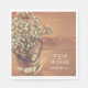 Une serviette en papier mariage rustique avec l'image d'un pot en maçon plein de fleurs à l'haleine blanche pour bébé sur un arrière - plan en bois.