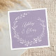 Cette élégante serviette en papier de mariage présente un bel arrière - plan lavande violet avec une couronne fleur sauvage dessinée à la main et une élégante typographie en blanc. C'est un design parfait pour un mariage rustique mais élégant et coordonne avec notre collection Rustic Fleur sauvage...Voir la collection pour plus d'articles!