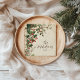 Un décor festif de Noël avec des feuilles saints de style vintage, des baies rouges vitrées et une végétation de pins contre un arrière - plan parchemin rustique. Un look de vacances boisé intemporel à la fois confortable et élégant.