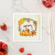 Une serviette en papier avec un mignon écureuil debout derrière quelques citrouilles orange aquarelle. Une couronne de feuillage les entoure d'une feuille de chêne et de fleurs d'orange et d'autres sprigs et feuilles. Arrière - plan est une image numérique parchemin vintage.
