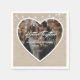 Décorez votre fête de mariage campagnard rustique avec ces serviettes personnalisées en papier photo avec un cadre photo cardiaque sur un arrière - plan de burlap orné de lampes à cordes.