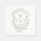 Serviette En Papier Sage Green Classic Floral Crest Monogramme Mariage