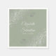 Ces belles serviettes feront de votre réception de mariage quelque chose de spécial. Elles présentent un design simple mais élégant avec du texte gris pâle sur un arrière - plan vert sage avec des boucles et des tourbillons en faux feuille argent en dentelle dans les coins. Personnalisez facilement avec vos noms et la date du mariage.