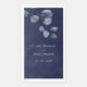 Un assemblage minimaliste de somptueuses peonies d'aquarelle marine en velours bleu marine, auxquelles assistent des sprigs d'eucalyptus sur un arrière - plan de velours bleu marine avec une police de serif blanc classique en haut coque annonçant votre mariage et les détails.