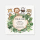 Cute safari à thème de soirée serviette avec d'adorables animaux de la jungle et de la végétation botanique tropicale. Personnalisez le libellé pour votre événement, c'est-à-dire le baby shower, l'arrosage de bébé, l'anniversaire, le baptême, le baptême, le baptême, la communion sainte, etc.