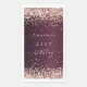 Pour un 21ème anniversaire élégant (ou tout âge). Une couleur arrière - plan bordeaux. Décoré de confettis d'or rose. Personnalisez et ajoutez un nom et un âge. Anniversaire est écrit avec un script de style moderne écrit à la main avec des swashes.