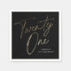 Script moderne Black and Gold 21st Birthday Party Napkins.