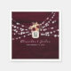 Élégantes serviettes de mariage burgundy en bois rustique moderne avec de belles fleurs aquarelles dans un monogramme de pot Mason, des guirlandes lumineuses et une calligraphie tendance.