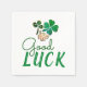 Green Good Luck Four Leaf Clover Shamrock serviettes. Citation Bonne chance et trèfle vert dessiné à la main avec quatre feuilles pour la chance.