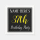 Cette conception simple et élégante de serviette en papier comporte un message comme "Name-Here’s 37th Birthday Party", avec le "37th" en texte jaune soigné, dans une zone carré de couleur noire avec un contour de bordure simple. Un nom personnalisé peut être utilisé. Des serviettes comme celles-ci pourraient être utilisées à une fête d'anniversaire pour quelqu'un qui célèbre son trente-septième anniversaire. [~Z0000150]