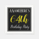 Cette conception simple et élégante de serviette en papier comporte un message comme "AnameHere’s 64th Birthday Party", avec le "64th" en texte jaune raffiné, dans une zone de carré de couleur noire avec un contour de bordure simple. Un nom personnalisé peut être utilisé. Des serviettes comme celles-ci pourraient être utilisées à une fête d'anniversaire pour quelqu'un qui célèbre son soixante-quatrième anniversaire. [~Z0000150]