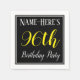 Cette conception simple et élégante de serviette en papier comporte un message comme "Name-Here’s 96th Birthday Party", avec le "96th" en texte jaune raffiné, dans une zone carré de couleur noire avec un contour de bordure simple. Un nom personnalisé peut être utilisé. Des serviettes comme celles-ci pourraient peut-être être utilisées à une fête d'anniversaire pour quelqu'un qui célèbre son quatre-vingt-seize anniversaire. [~Z0000150]