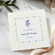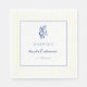 Serviettes en papier bleu et jaune inspirées de l'Italie pour une fête de mariage avec des citrons gribouillés à la main en bleu marine et des rayures jaunes. Personnalisez avec le nom et la date de l'événement.
