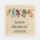 Créez des approvisionnements personnalisés avec un thème de planche à roulettes. Ces serviettes en papier de skate park sont des illustrations de skateboarders en orange rouille, bleu turquoise, rouge foncé, jaune moutarde et vert ensemble contre un arrière - plan à faux grain de bois. Le texte est en gris charbon et tout est prêt à être customisé avec vos informations.