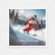 Ces serviettes en papier d'anniversaire ont un homme skiant contre un arrière - plan montagneux magnifique.