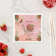 Add a charming and coordinated touch to your little one's 'berry first' birthday party with these adorable paper napkins! The delightful watercolor design features a whimsical snail with a strawberry for its shell, surrounded by sweet strawberry vines, a graceful butterfly, and a tiny ladybug. Personalized with "Michaela's Berry first BIRTHDAY" and the year, set against a soft pink watercolor background, these square napkins are perfect for bringing your theme to life. Ideal for cake, snacks, or drinks, they ensure every detail of your celebration is as 'berry sweet' as can be, perfectly complementing your 'Berry First' birthday collection.